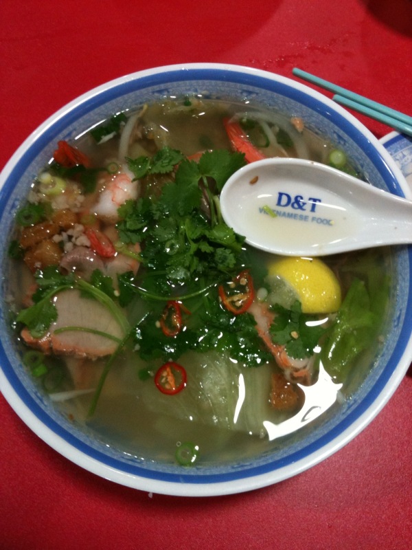 A long time favourite of mine. These Vietnamese ladies keep the stock pot going with some of the clearest broth in town. I love the No 2 because of the perfect glass noodles and the tender prawns, the tiny cubes of pork crackling and the chicken pieces that have fallen from the stock bones, the fresh coriander and squeeze of lemon. But what I like most — there is an infinite variety of choices to be had for lunch around Chinatown and the Central Market area, and if I don’t know just what I want I do know that No 2 will always be just right. Slurp…